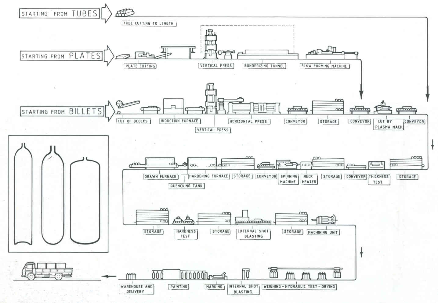 PLANT FOR THE PRODUCTION OF SEAMLESS STEEL HIGH PRESSURE GAS CYLINDERS